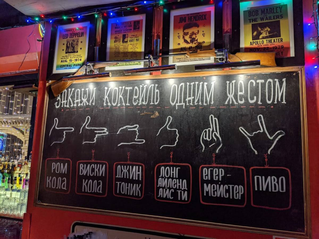 А что, это интересно, когда музыка звучит громко и ничего не слышно, можно и даже нужно переходить на язык жестов. В Олдскул Паб (Old School Pub) именно так и делают.
